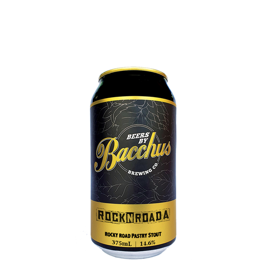 ROCKNROADA (Alc 14.6%) 375mL can. Name inspired by the movie Rocknrola, this is an Imperial Pastry Stout version of our award winning “Sex, Drugs & Rocky Road”. Crammed full of Chocolate, Vanilla, Marshmallow, Cherries, Peanuts, Hazelnuts & Turkish Delight this is Rocky Road in a glass.
