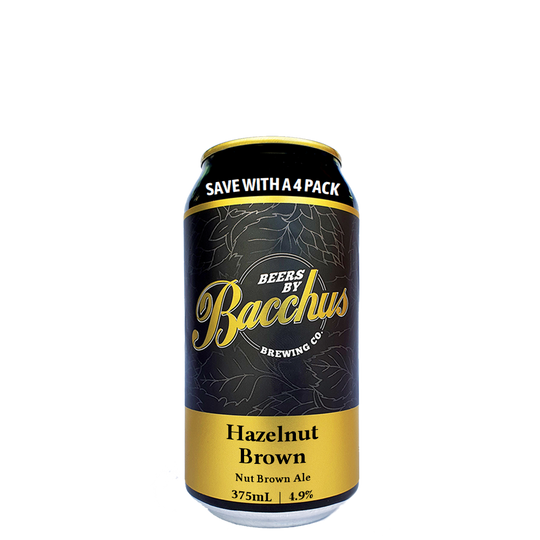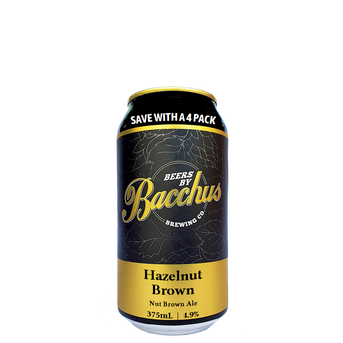 Hazelnut Brown Ale (Alc 4.9%) 375mL can. A traditional nutty & malty English Brown Ale, enhanced with the addition of hazelnuts for a richer more complex nut flavour.