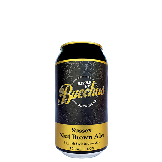 Sussex Nut Brown Ale (Alc 4.9%) 375mL can. Classic English style Brown Ale. Similar hop character to our Sussex Cask Ale, medium light in body, full flavoured, with a light caramel, malty, nutty, character.